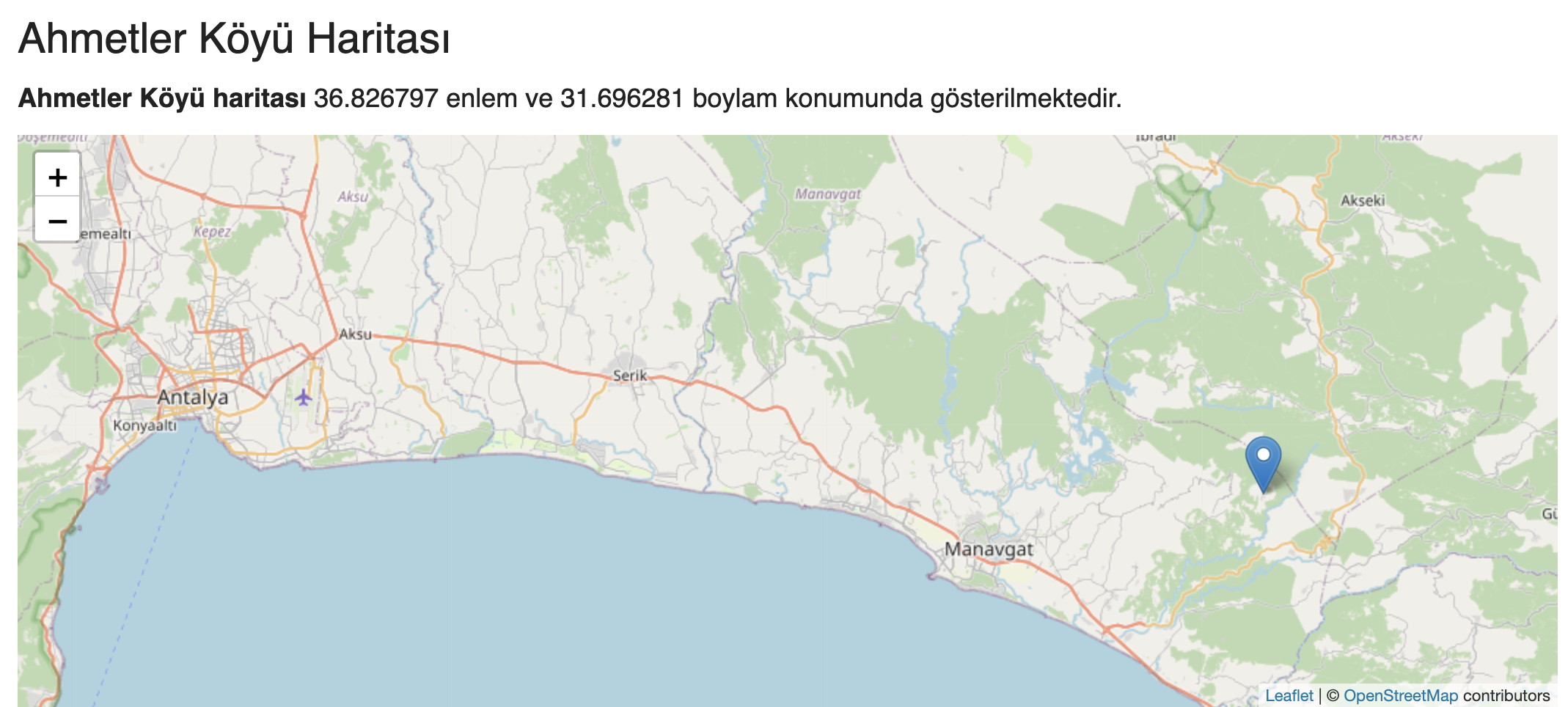 Antalya'ya 110, Manavgat'a 40 km uzaklıkta olan Ahmetler'in nerede olduğunu bilmeyenler için interaktif Türkiye haritasını ekledik.
