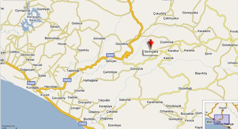 Haritada Manavgat'ı bulduktan sonra Akseki - Konya yolunu izleyerek Ahmetler'e nasıl gidileceğini görebilirsiniz.,
