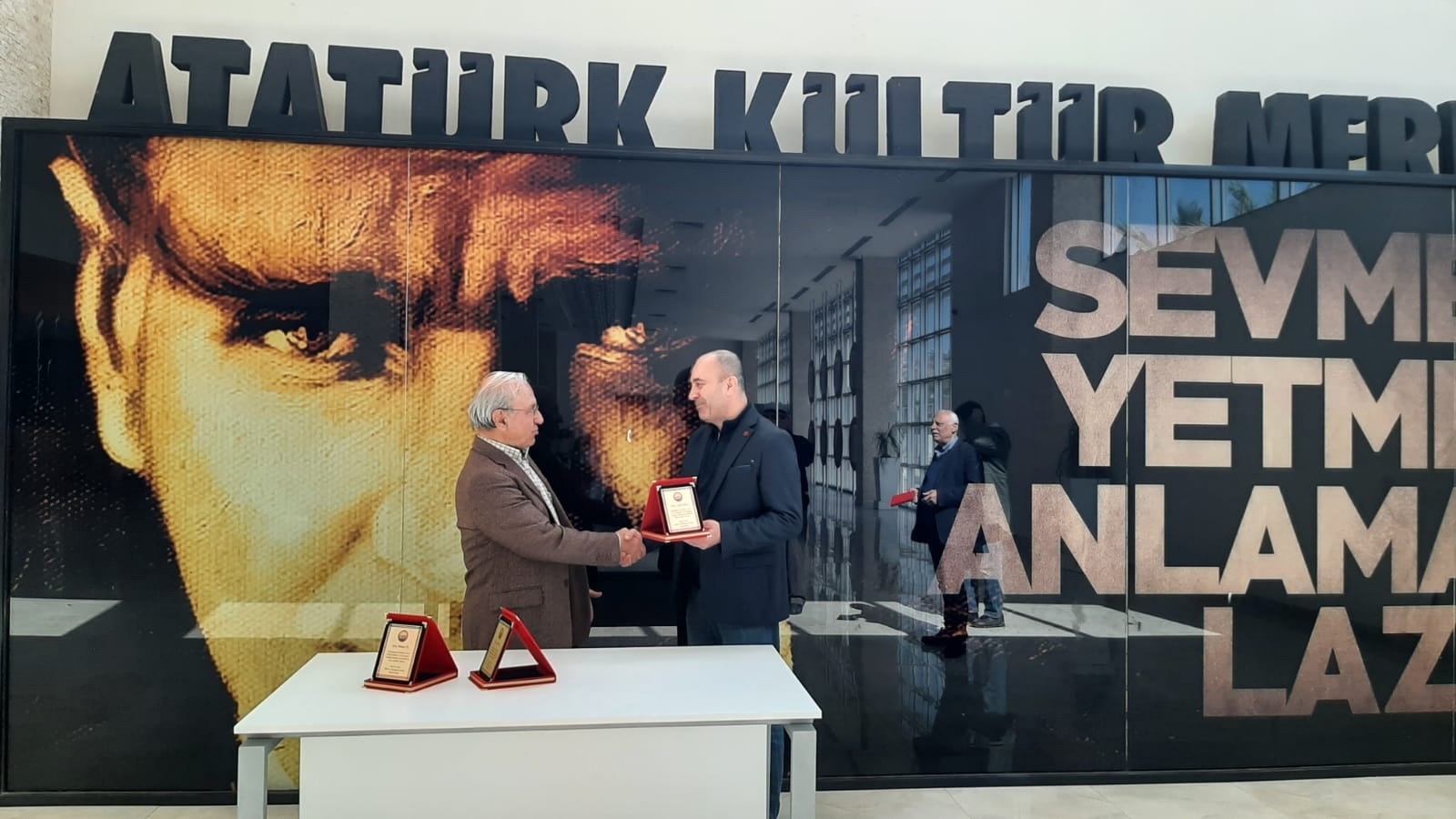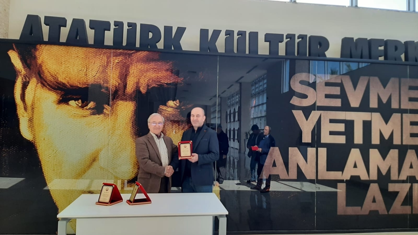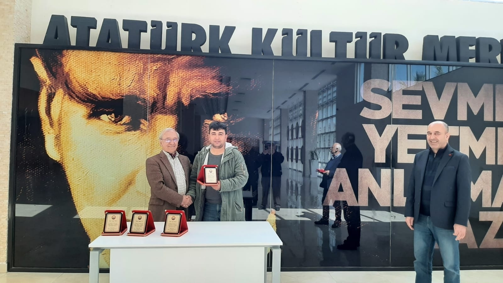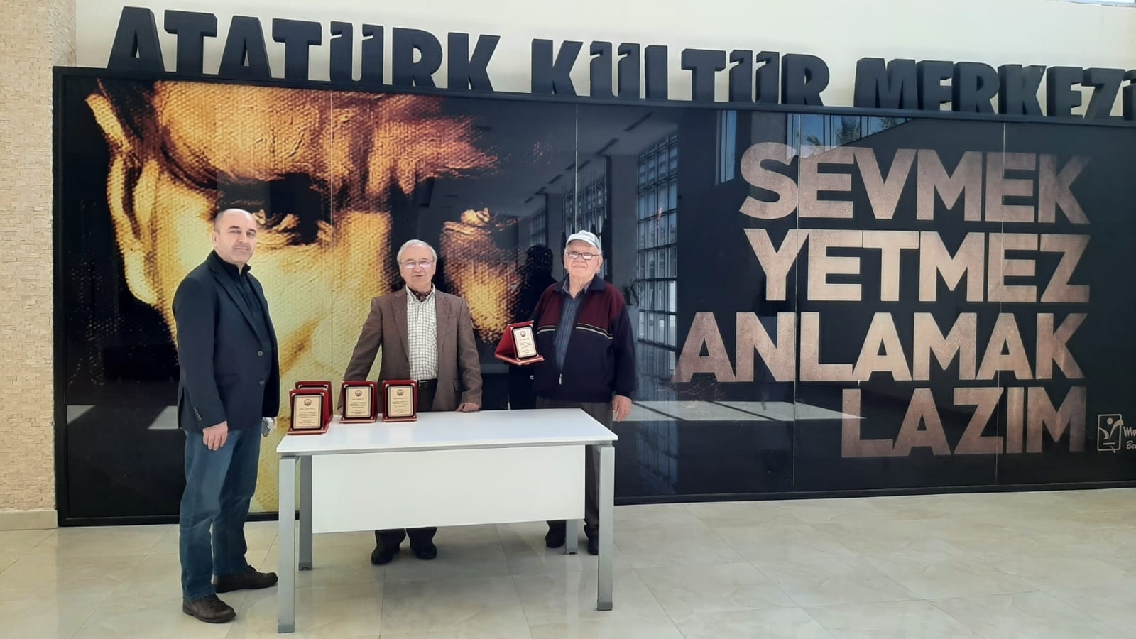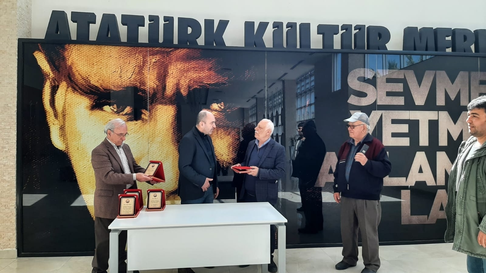 Ahmetler Kültür ve Dayanışma Derneği olağan genel kurulunda seçilen yeni yönetim kurulu üyeleri, önceki dernek yönetim kuruluna birer teşekkür plaketi verdi. Pandemi koşulları nedeniyle törene katılamayan bazı üyelerin plaketlerini vermek için yeni dernek başkanı Özgür Varol,iki üyeyi iş yerlerinde ziyaret etti.